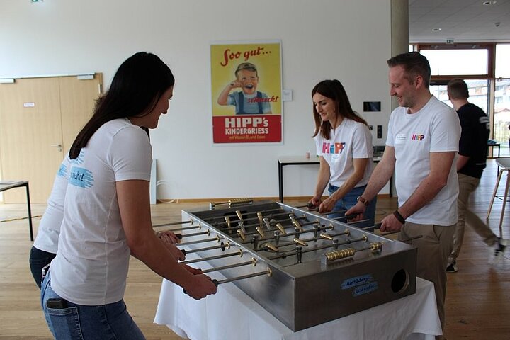 Eine weiter Attraktion war unser brandneuer Kicker, den unsere Industriemechaniker-Azubis selbst gebaut haben.