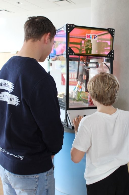 So konnten die insgesamt 270 Besucherinnen und Besucher am Glücksrad, dem heißen Draht, unserem Greifer oder der fliegenden Kugel ihr Geschick testen und dabei verschiedene HiPP-Produkte gewinnen.
